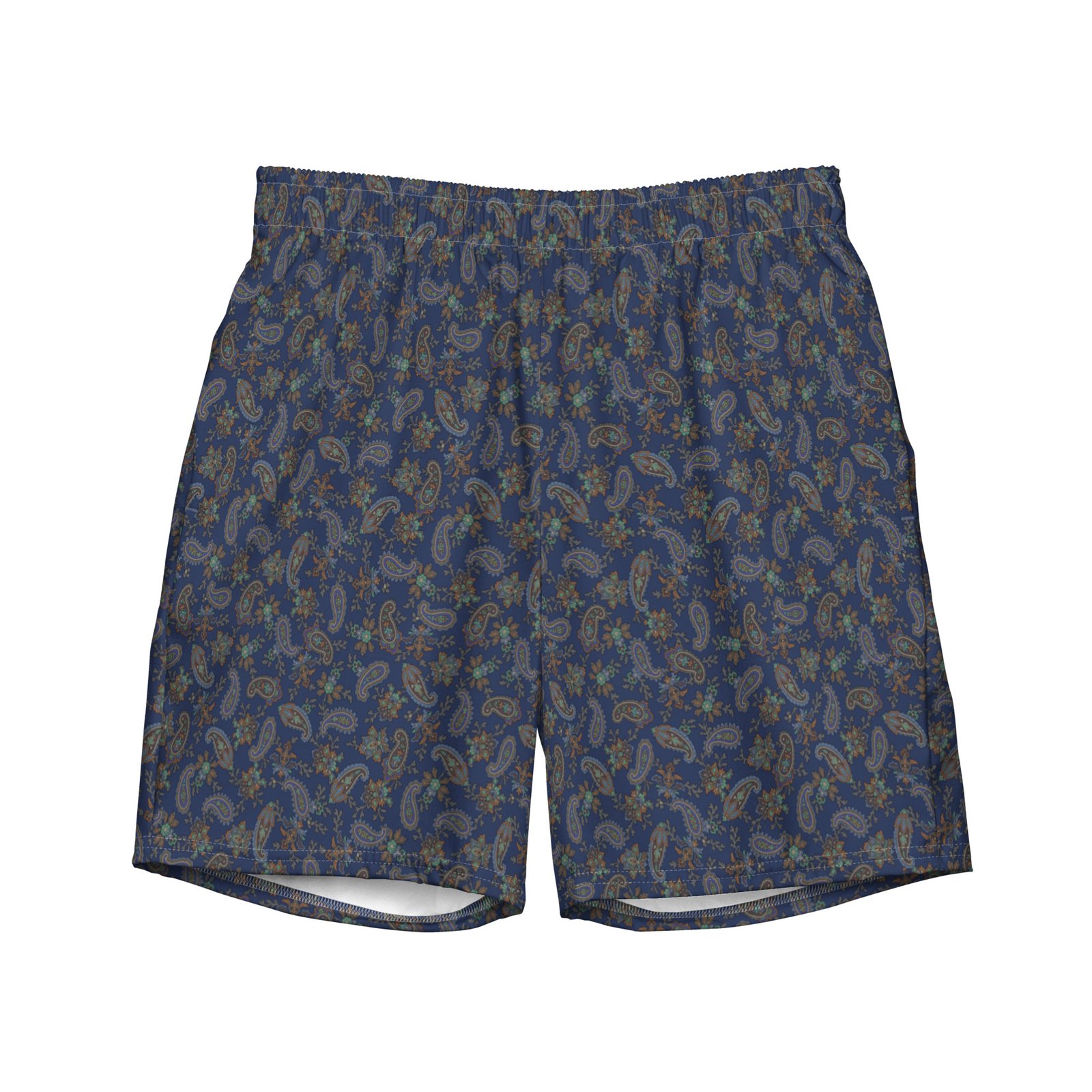 Green Paisley Swim Trunks: Elegant Mediterranean Mens Swimwear