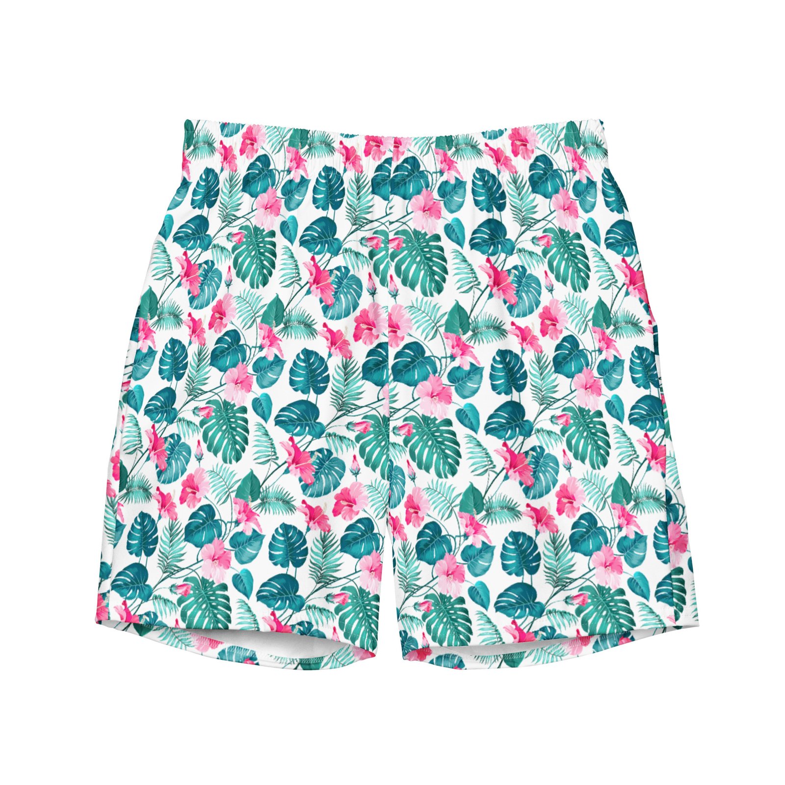 Mens Tropical Flower Print Swim Trunks: Eclectic Summer Activewear