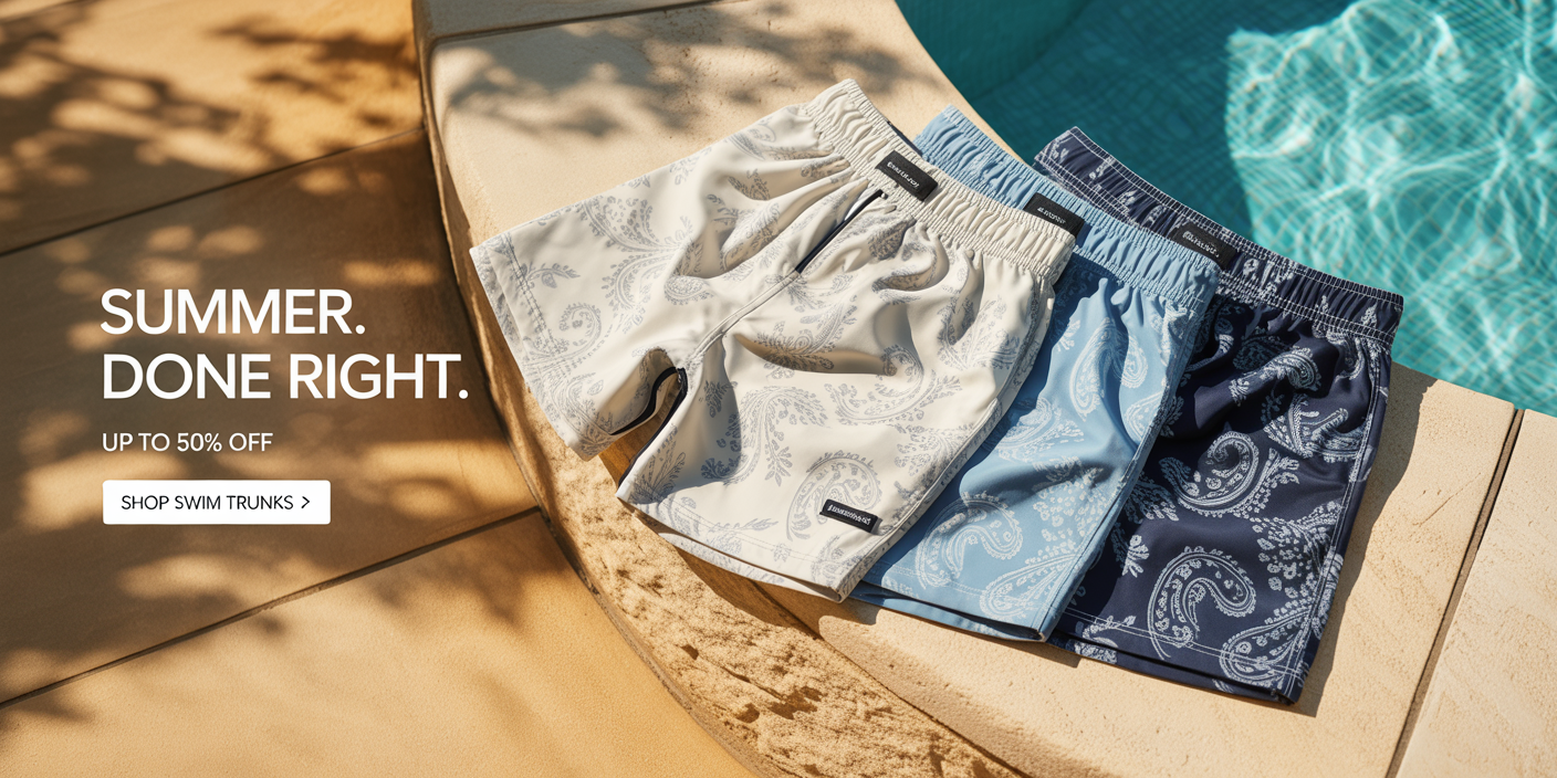 MENS LUXURY RESORT SWIM TRUNKS TAUPE PAISLEY PRINT ELEGANT DESIGNER SWIMWEAR PREMIUM BEACH SHORTS GIFT FOR HIM